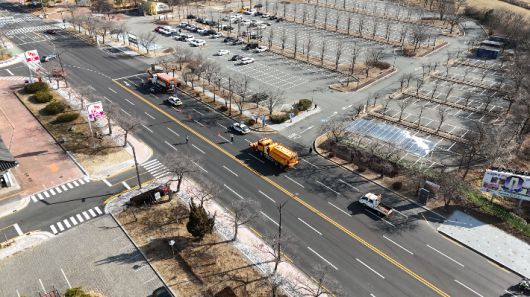 훈련에서는 제설차량을 활용한 신속한 도로 정비와 염화칼슘 살포, 교통 통제 및 우회도로 안내, 현장 안전관리 등 실제 재난 발생 시 적용 가능한 대응 절차를 단계별로 확인했다.