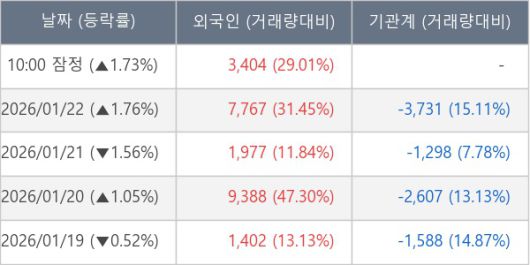 [표] 외국인ㆍ기관 순매매량 (단위 주)