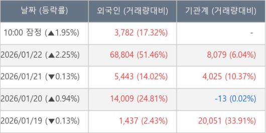 [표] 외국인ㆍ기관 순매매량 (단위 주)