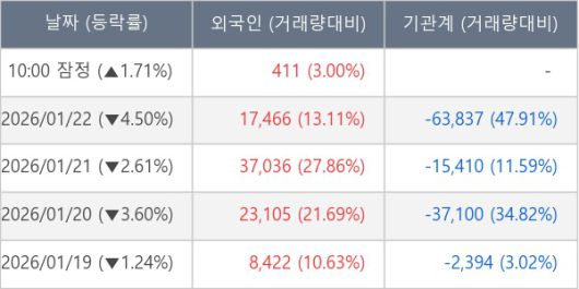 [표] 외국인ㆍ기관 순매매량 (단위 주)