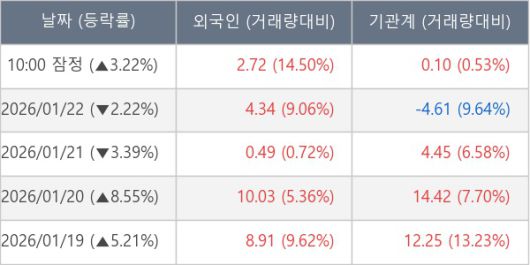 [표] 주요 기관별 순매매량 (단위 만주)