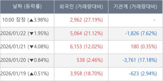 [표] 외국인ㆍ기관 순매매량 (단위 주)