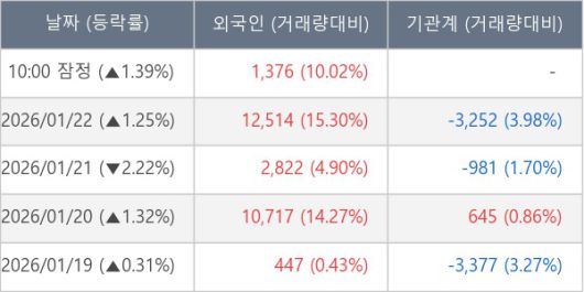 [표] 외국인ㆍ기관 순매매량 (단위 주)
