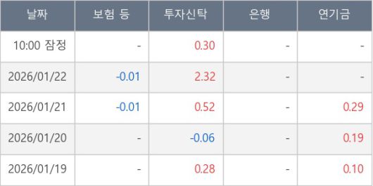 [표] 주요 기관별 순매매량 (단위 만주)
