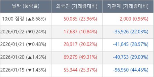 ※ 사모펀드 등 일부 기관의 순매매량은 표시되지 않음
