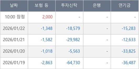 [표] 주요 기관별 순매매량 (단위 주)