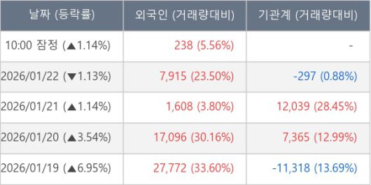 [표] 외국인ㆍ기관 순매매량 (단위 주)