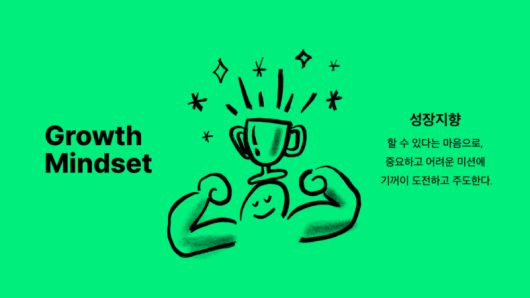 성장지향은 어렵더라도 피하지 않고, 내가 먼저 풀어보겠다는 자세입니다. 누군가의 강요가 아니라 스스로 결정해서 도전하는 것이죠. 필요하면 자신의 직무를 벗어나더라도 자발적으로 나서는 태도를 의미합니다.