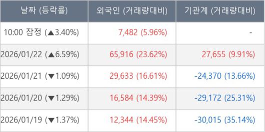 [표] 외국인ㆍ기관 순매매량 (단위 주)