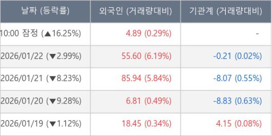 [표] 외국인ㆍ기관 순매매량 (단위 만주)