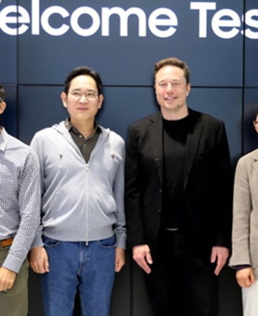 KB증권은 삼성전자에 대해 테슬라 AI 칩 공급 확대에 따른 가동률 상승을 통해 파운드리 사업 실적이 2025년 7조원 적자에서 2027년 흑자 전환이 가능할 것으로 추정했다. 사진은 이재용 삼성전자 회장과 일론 머스크 테슬라 CEO. /뉴시스 |