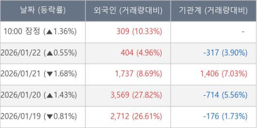 [표] 외국인ㆍ기관 순매매량 (단위 주)