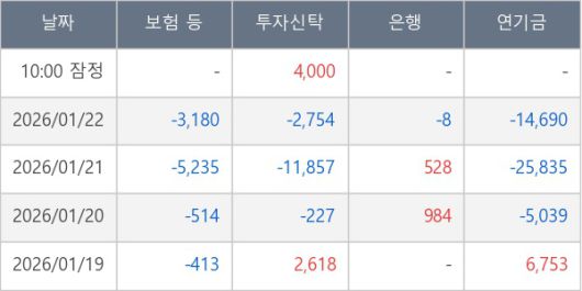[표] 주요 기관별 순매매량 (단위 주)
