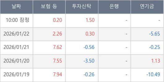 [표] 주요 기관별 순매매량 (단위 만주)