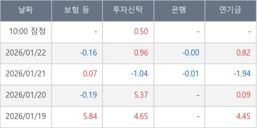 [표] 주요 기관별 순매매량 (단위 만주)