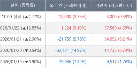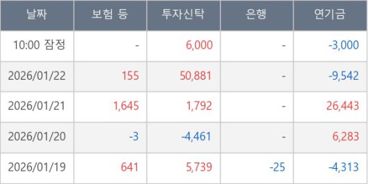 [표] 주요 기관별 순매매량 (단위 주)