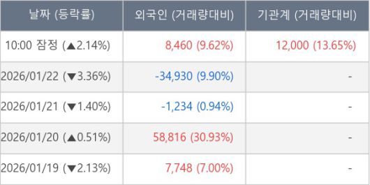 ※ 사모펀드 등 일부 기관의 순매매량은 표시되지 않음