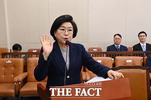 [더팩트ㅣ국회=남용희 기자] 이혜훈 기획예산처 장관 후보자가 23일 오전 서울 여의도 국회 재정경제기획위원회에서 열린 인사청문회에서 선서를 하고 있다.