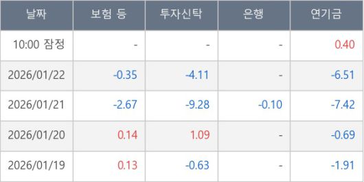 [표] 주요 기관별 순매매량 (단위 만주)