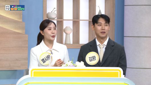 별사랑은 지난해 9월 결혼해 신혼 생활 중이다. 별사랑은 "결혼한다고 나오고, 결혼했다고 나오고, 결국에는 이번에는 남편까지 끌고 나왔다"며 "신혼 부부 5개월 차, 우리 결혼했다"고 반갑게 인사했다. 방송에 익숙한 별사랑과 달리 남편 김완은 "조금 떨린다"며 쑥스러워해 웃음을 자아냈다. 김완은 훤칠한 비주얼로도 눈길을 끌었다.