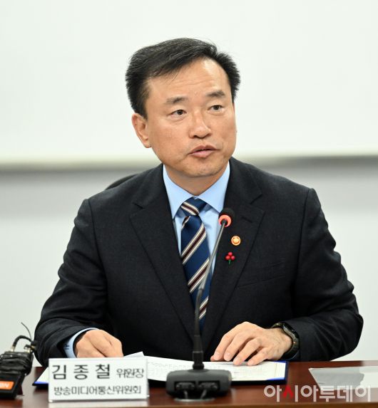 아시아투데이 박성일 기자 = 김종철 방송미디어통신위원회 위원장이 23일 서울 종로구 정부서울청사 성평등가족부에서 열린 디지털성범죄 대응 및 안전한 온라인 환경 조성을 위한 성평등가족부-방송미디어통신위원회 업무협약식에서 인사말을 하고 있다.