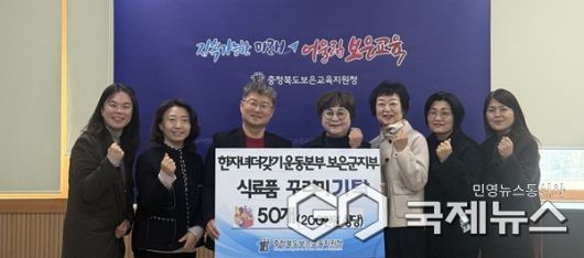 (보은=국제뉴스) 이재기 기자 = 충북 보은교육지원청(교육장 전병일)은 23일 소회의실에서 한자녀더갖기운동본부 보은지회(지부장 김창옥)와 함께 관내 결식 우려 학생들을 위한 온기 한 상 프로젝트 기탁식을 개최했다고 밝혔다.