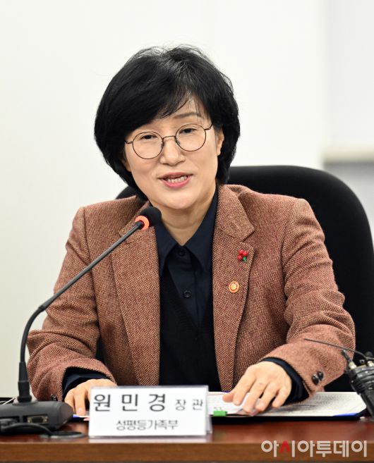 아시아투데이 박성일 기자 = 원민경 성평등가족부 장관이 23일 서울 종로구 정부서울청사 성평등가족부에서 열린 디지털성범죄 대응 및 안전한 온라인 환경 조성을 위한 성평등가족부-방송미디어통신위원회 업무협약식에서 인사말을 하고 있다.