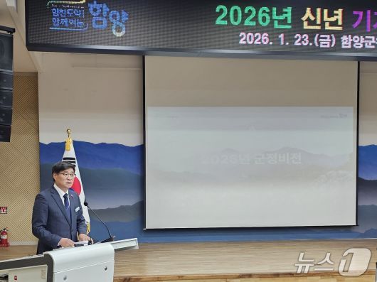진병영 함양군수가 23일 군청 대회의실에서 기자 간담회를 열고 올해 군정 주요 운영 방향을 설명하고 있다. 2026.1.2/뉴스1 한송학기자 |