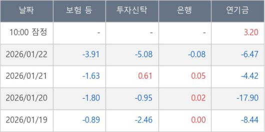 [표] 주요 기관별 순매매량 (단위 만주)