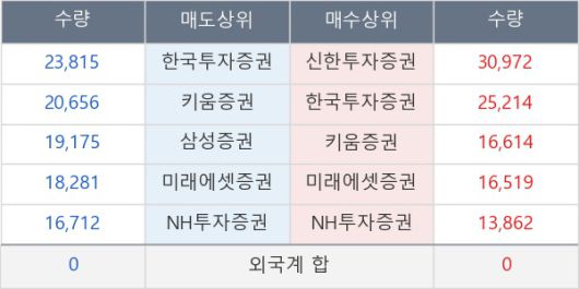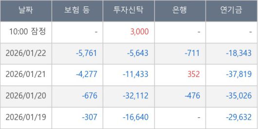 [표] 주요 기관별 순매매량 (단위 주)