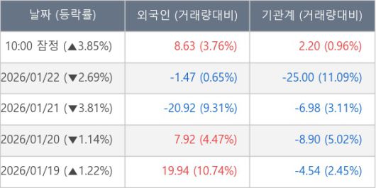 ※ 사모펀드 등 일부 기관의 순매매량은 표시되지 않음