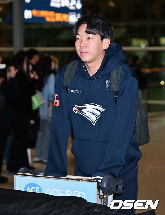 [OSEN=인천공항, 민경훈 기자] 프로야구 한화 이글스가 2026 시즌을 준비하기 위해 23일 오전 인천공항을 통해 호주 멜버른으로 1차 스프링캠프를 떠났다. 김경문 감독이 이끄는 한화 선수단은 코치진 17명, 선수 46명을 합해 63명으로 1차 스프링캠프 명단을 꾸렸다. 한화 황준서가 출국길에 오르고 있다. 2026.01.23 / rumi@osen.co.kr