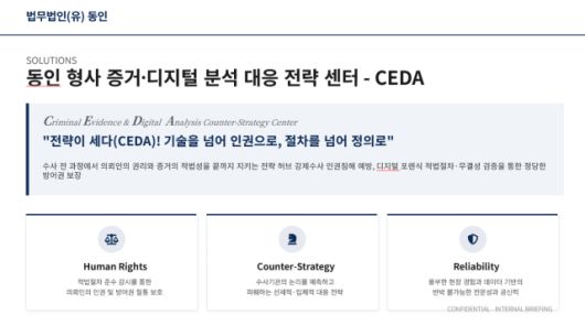 법무법인(유한) 동인은 급변하는 수사 환경과 디지털 증거 중요성 증대에 대응하기 위해 '영장·포렌식팀'을 '형사 증거·디지털 분석 대응 전략 센터(Criminal Evidence&Digital Analysis Counter-Strategy Center, 이하 CEDA)'로 확대 개편했다고 23일 밝혔다.