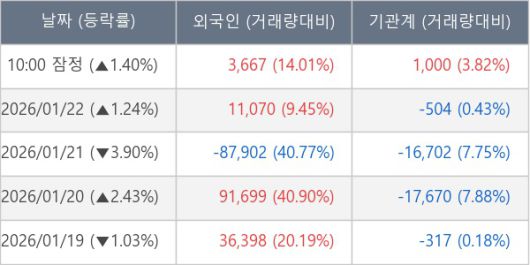 ※ 사모펀드 등 일부 기관의 순매매량은 표시되지 않음