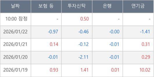 [표] 주요 기관별 순매매량 (단위 만주)