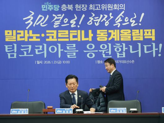 더불어민주당 한병도 원내대표가 23일 충북 진천 국가대표선수촌에서 열린 현장 최고위원회의에 참석하고 있다. [연합] |