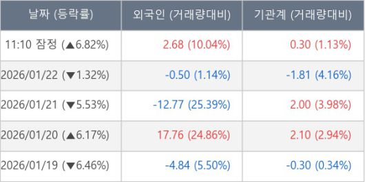 ※ 사모펀드 등 일부 기관의 순매매량은 표시되지 않음