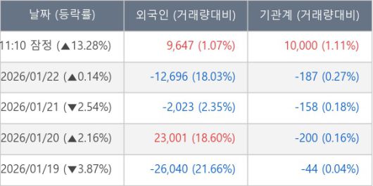 ※ 사모펀드 등 일부 기관의 순매매량은 표시되지 않음