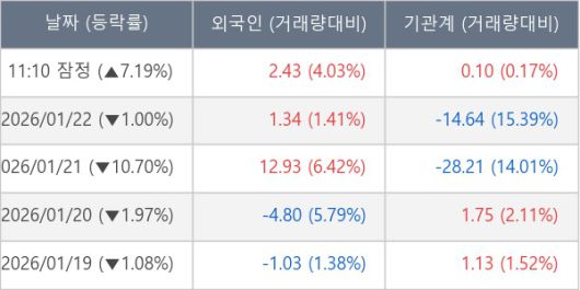 ※ 사모펀드 등 일부 기관의 순매매량은 표시되지 않음