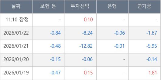 [표] 주요 기관별 순매매량 (단위 만주)
