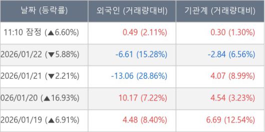 ※ 사모펀드 등 일부 기관의 순매매량은 표시되지 않음