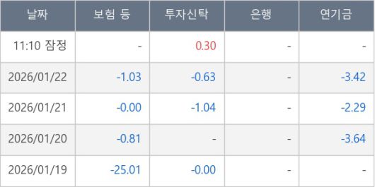 [표] 주요 기관별 순매매량 (단위 만주)
