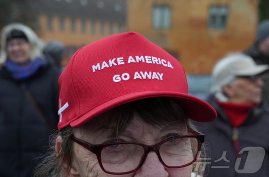 덴마크 수도 코펜하겐에서 미국의 그린란드 병합에 반대하는 시위자가 17일 '미국을 물러가게 하라'(Make America Go Away)라고 쓰인 모자를 쓰고 있다. 2026.1.17 ⓒ 로이터=뉴스1 ⓒ News1 강민경 기자 |