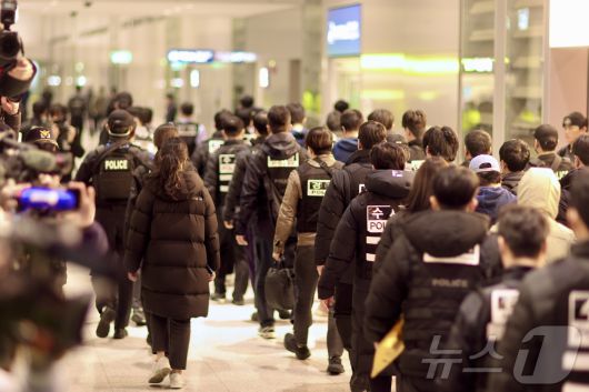 이날 기내에서 체포돼 공항에 도착한 피의자들은 호송경찰관 37명과 버스 2대를 동원해 보령서와 홍성서로 각각 8명과 9명씩 분산 유치될 예정이다.