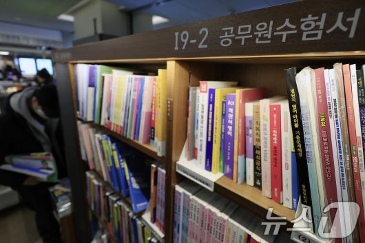 정부의 공무원 채용 규모 확대 및 처우 개선 등으로 공무원 시험 시장이 꿈틀대는 가운데 지난 4일 서울 광화문 교보문고를 찾은 공시생이 수험서를 살펴보고 있다. 2026.1.4/뉴스1 ⓒ News1 박정호 기자 |