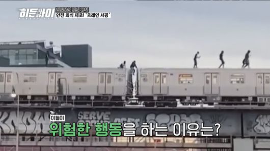 권일용의 범죄 규칙에서는 미국 뉴욕의 10대들이 최대 시속 80km로 질주하는 열차 지붕 위에 올라 아찔한 서핑을 즐기는 충격적인 모습을 보인다.
