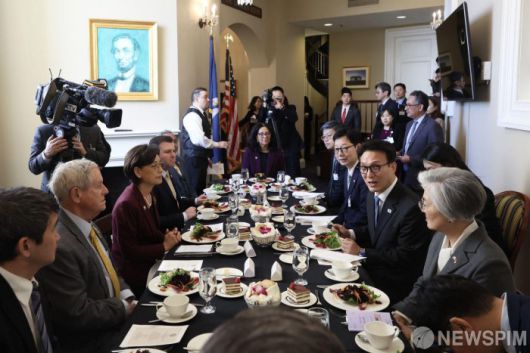 [서울=뉴스핌] 김민석 국무총리가 22일(현지시간) 미국 워싱턴 DC 소재 미국 국회의사당에서 열린 미 하원 주요인사 초청 오찬 간담회에서 발언하고 있다.[사진=총리실] 2026.01.23 photo@newspim.com