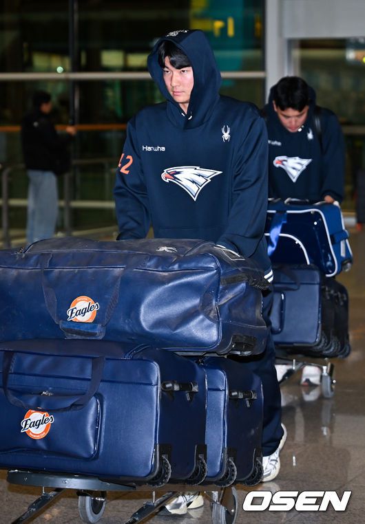 [OSEN=인천공항, 민경훈 기자] 프로야구 한화 이글스가 2026 시즌을 준비하기 위해 23일 오전 인천공항을 통해 호주 멜버른으로 1차 스프링캠프를 떠났다. 김경문 감독이 이끄는 한화 선수단은 코치진 17명, 선수 46명을 합해 63명으로 1차 스프링캠프 명단을 꾸렸다. 한화 박상언이 출국길에 오르고 있다. 2026.01.23 / rumi@osen.co.kr
