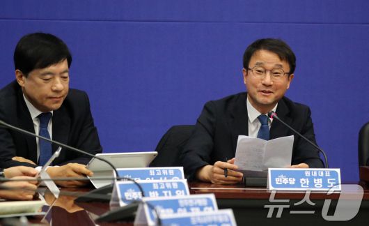 (진천=뉴스1) 김용빈 기자 = 한병도 더불어민주당 원내대표가 23일 충북 진천국가대표선수촌에서 열린 최고위원회의에서 발언하고 있다. 2026.1.23/뉴스1vin06@news1.krCopyright ⓒ 뉴스1. All rights reserved. 무단 전재 및 재배포, AI학습 이용 금지.