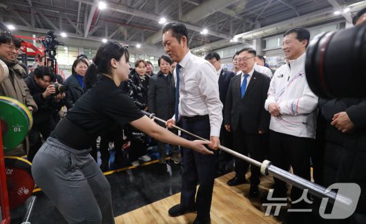 (진천=뉴스1) 김용빈 기자 = 정청래 더불어민주당 대표가 23일 충북 진천선수촌 웨이트트레이닝장에서 선수들과 함께 운동하고 있다. 2026.1.23/뉴스1vin06@news1.krCopyright ⓒ 뉴스1. All rights reserved. 무단 전재 및 재배포, AI학습 이용 금지.